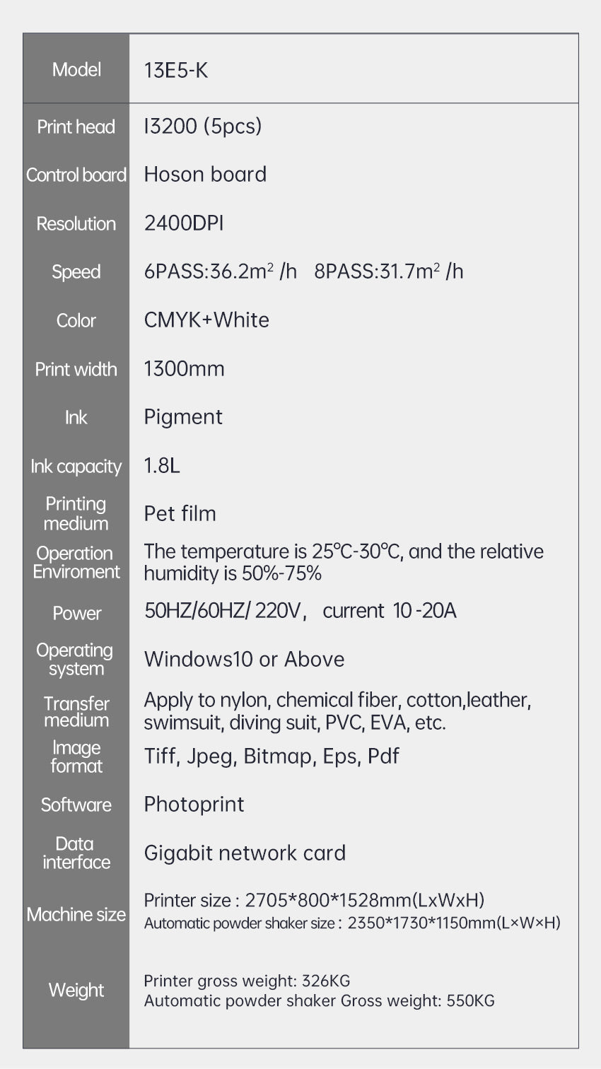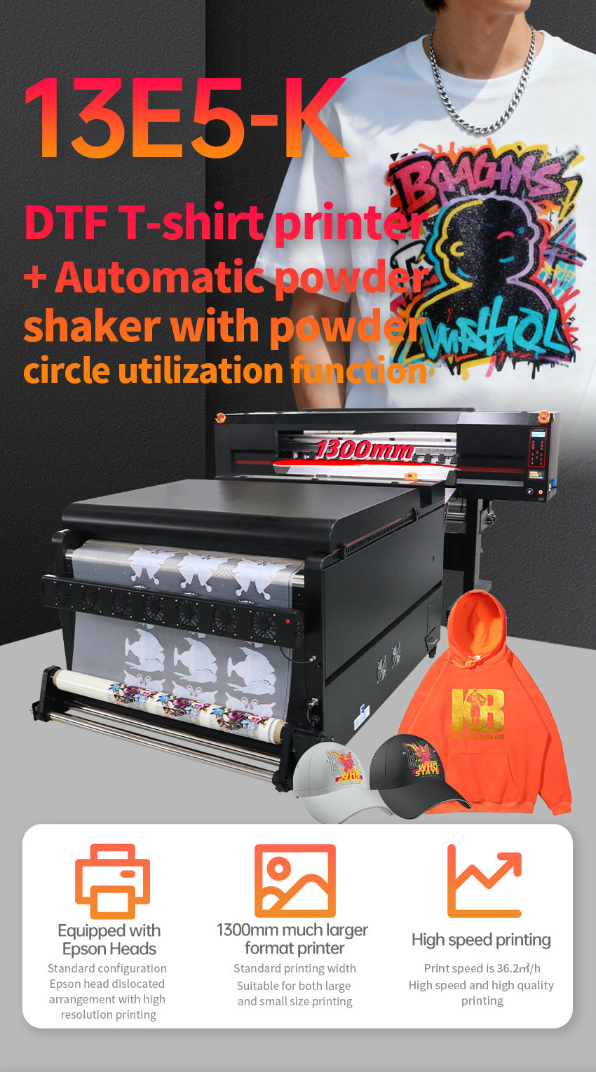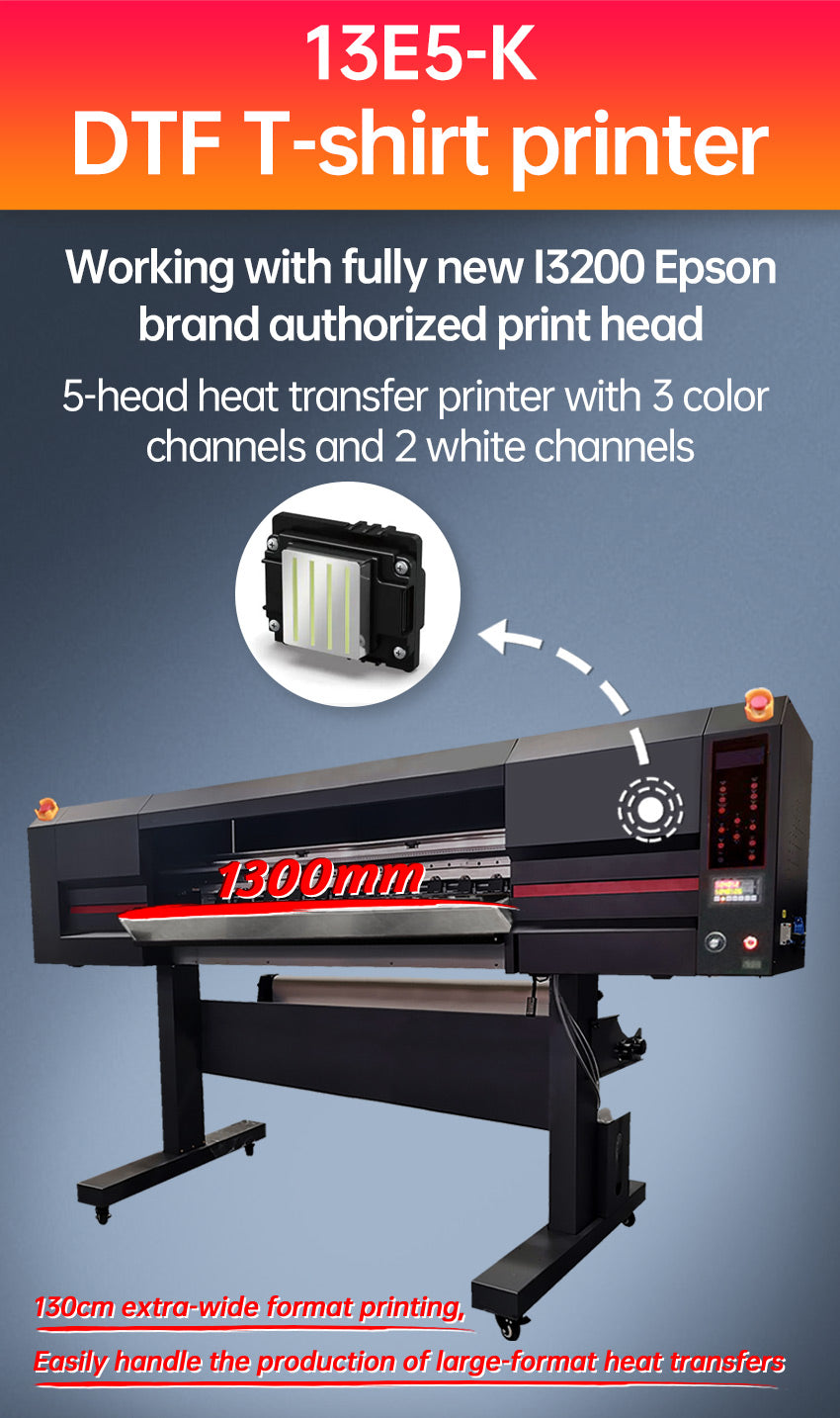 Titanjet 新型130cm 5ヘッド 3色+2白 DTF 高速 I3200 ワイドフォーマット パウダーシェイカー付き